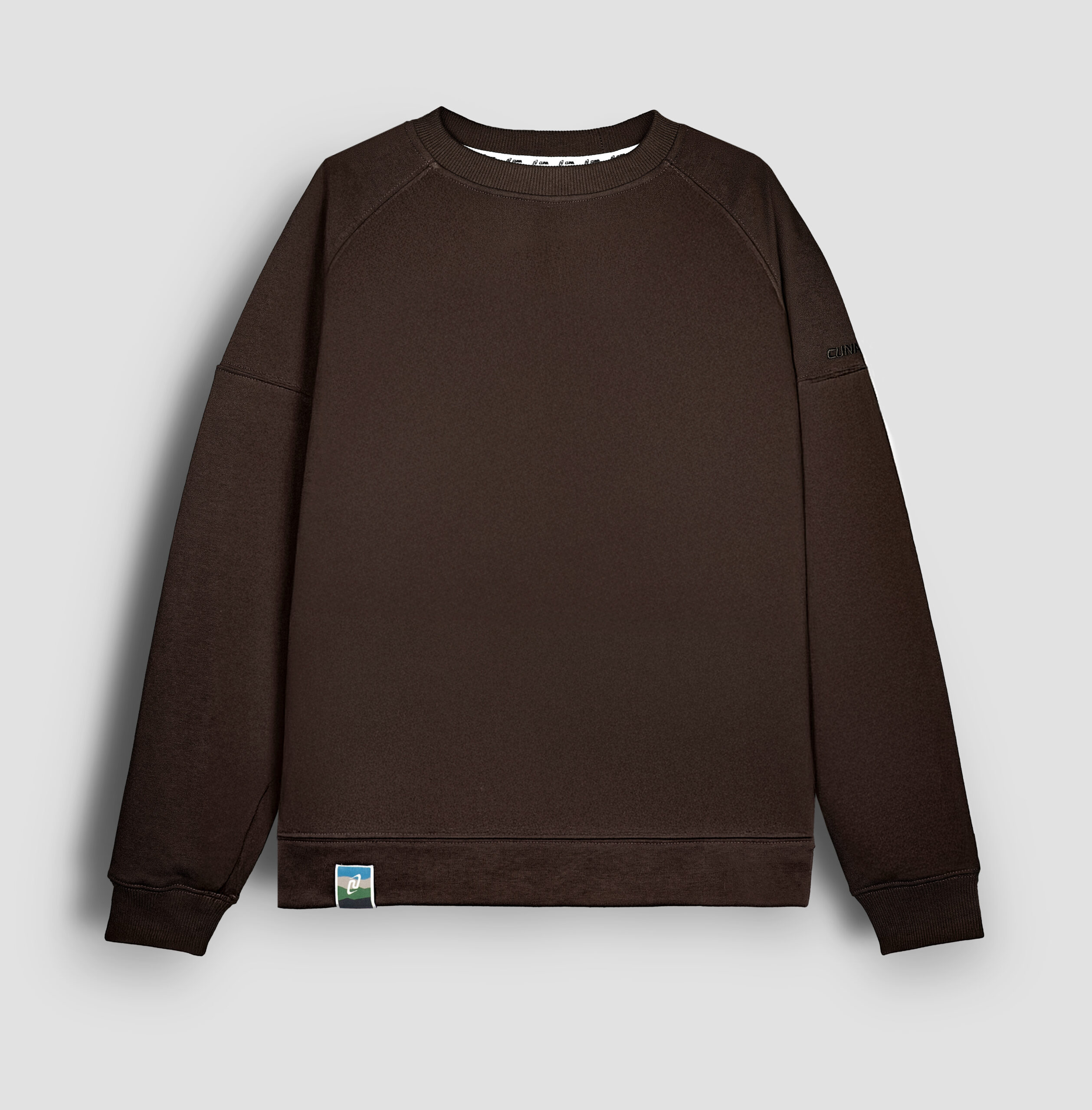 Okrągły dekolt, wygodne ściągacze, zero kombinowania – po prostu brązowa bluza damska bez kaptura, którą chce się nosić non stop. Dodaliśmy jeszcze naszą autorską żakardową wszywkę inspirowaną Pogórzem Karpackim, żeby całość miała swój własny klimat.