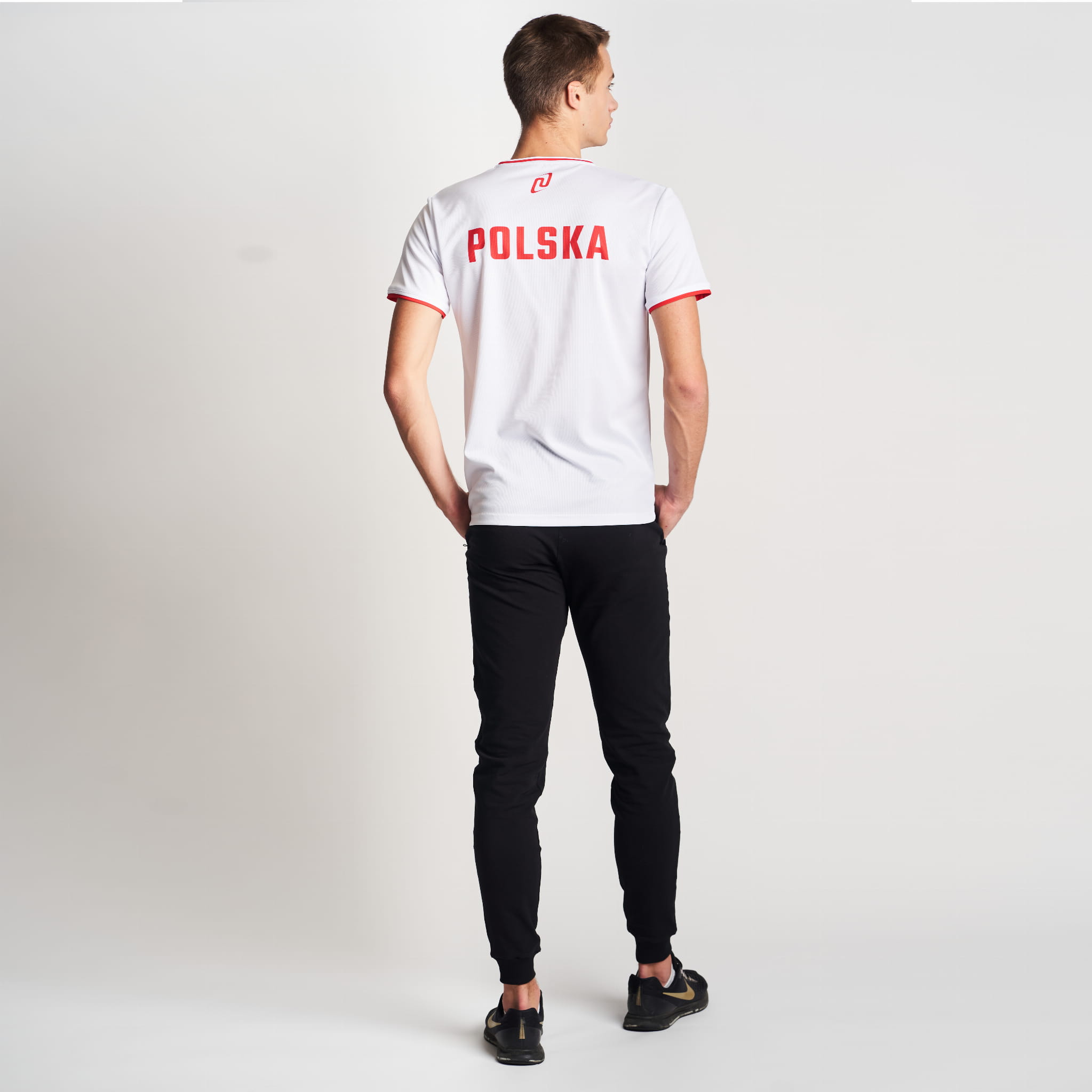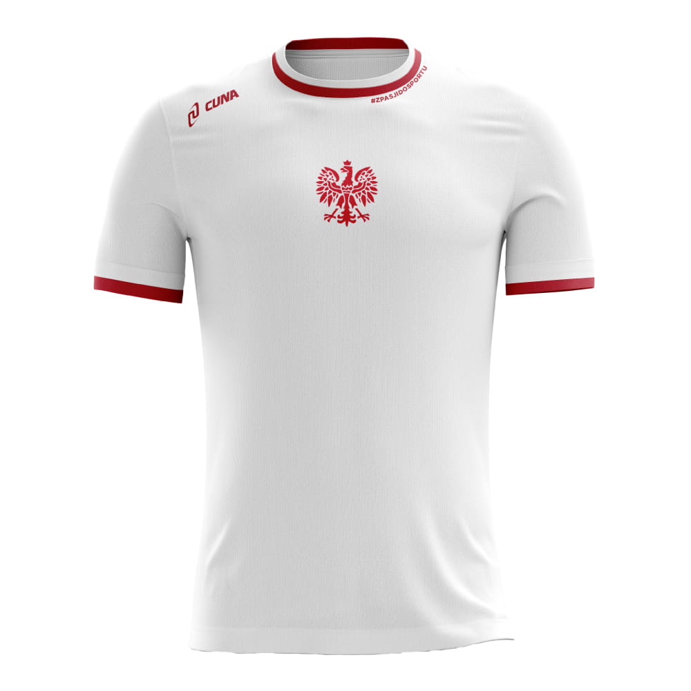 Koszulka z krótkim rękawem o uniwersalnym kroju unisex została wykonana z szybkoschnącego i miękkiego materiału, który zapewnia odpowiednią wentylację. Skutecznie odprowadza pot na zewnątrz, zwiększając tym samym komfort termiczny i wygodę użytkowania. Model doskonale dopasowuje się do kształtów ciała i nie ogranicza swobody ruchów, dzięki czemu możesz kibicować z pełnym zaangażowaniem. Nadruki na koszulkach wykonane są metodą sublimacji, co gwarantuje ich długotrwałość i intensywność kolorów.