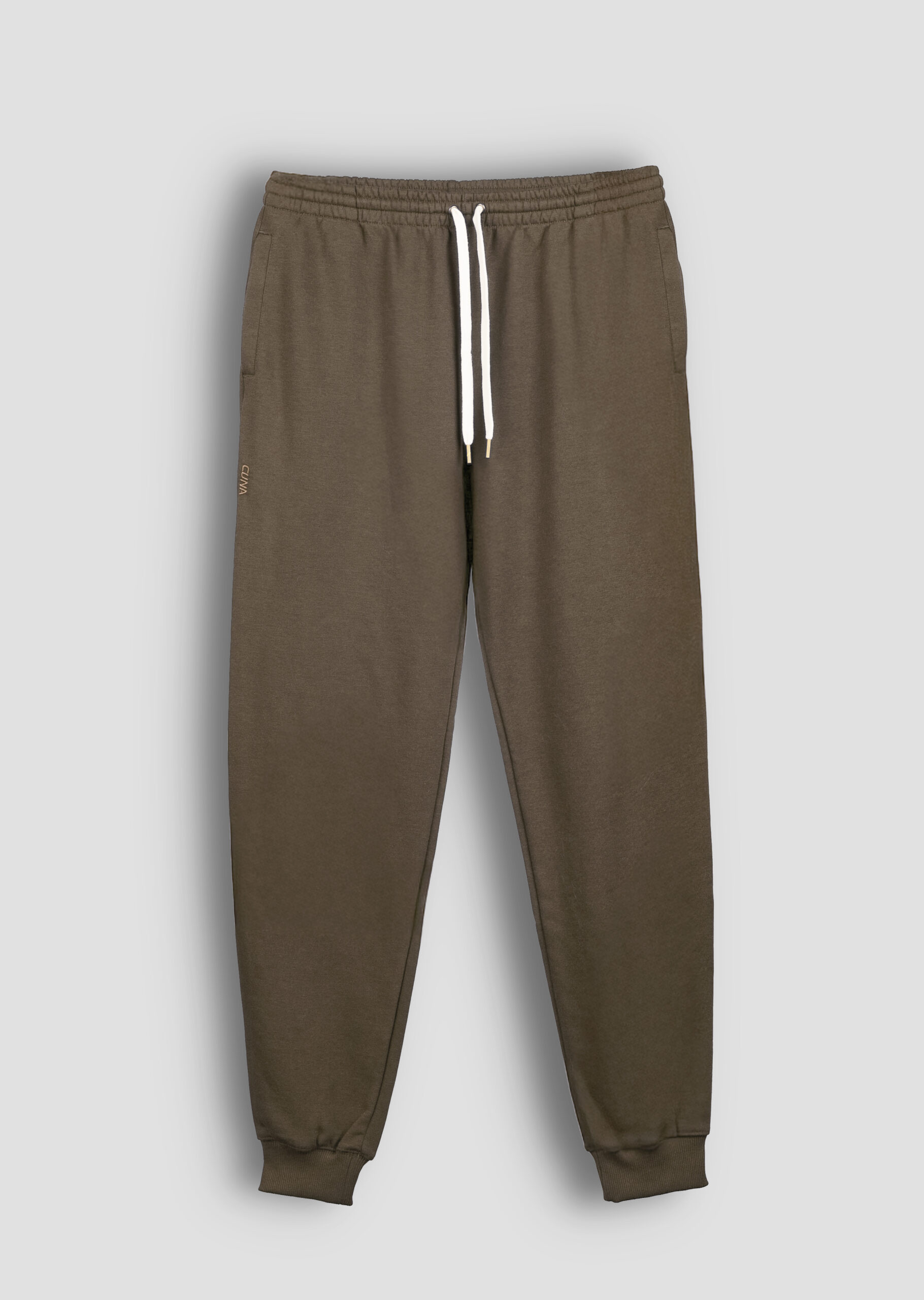 Elastyczna gumka w pasie i bawełniany sznurek pozwalają idealnie dopasować dresy do sylwetki. Ściągacze przy nogawkach nadają sportowego sznytu, a boczne kieszenie – praktyczności. Delikatny haft CUNA w kolorze materiału to minimalistyczny detal, który robi różnicę.