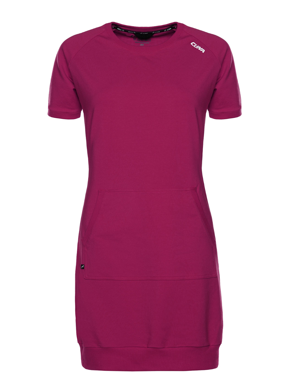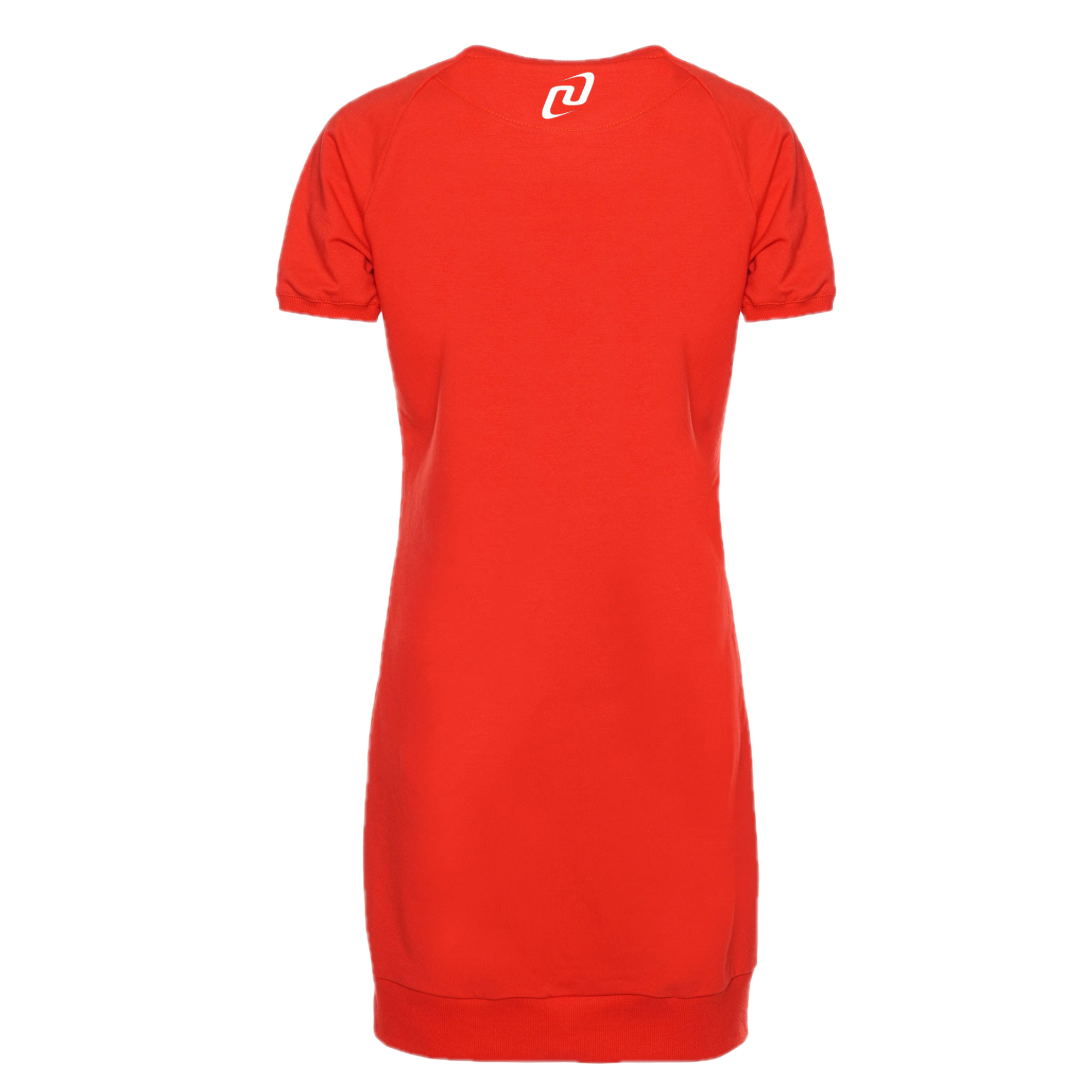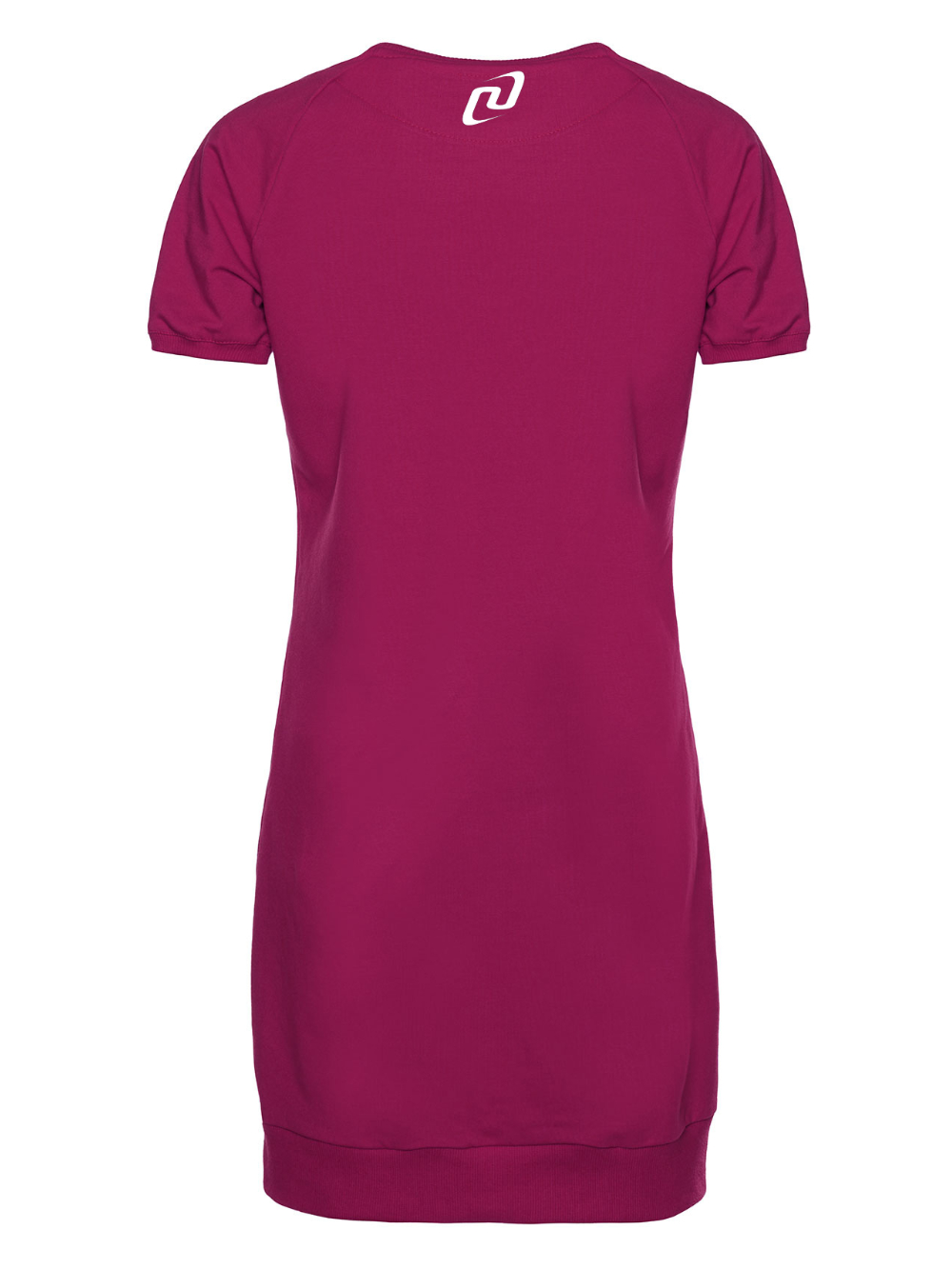 Wygodna, dresowa sukienka stanowi idealne połączenie elegancji i sportowej estetyki, dzięki czemu gwarantuje komfort i nowoczesny look na co dzień. Sukienka została uszyta z miękkiej i przyjemnej w dotyku dzianiny, która doskonale układa się na ciele. Kobiecy krój, kieszeń typu kangurka i krótkie rękawy nadają sukience uniwersalnego charakteru, czyniąc z niej podstawę kobiecych stylizacji utrzymanych w sportowym stylu. Posiada elementy odblaskowe oraz funkcyjny wieszak.